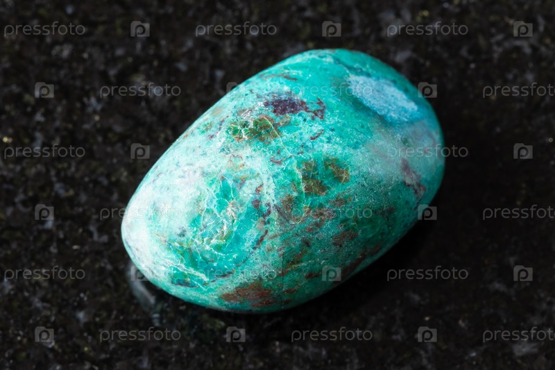 Образец полированного минерала хризоколла на черном