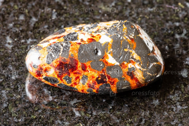Полированные минералы франклита и цинцита на черном