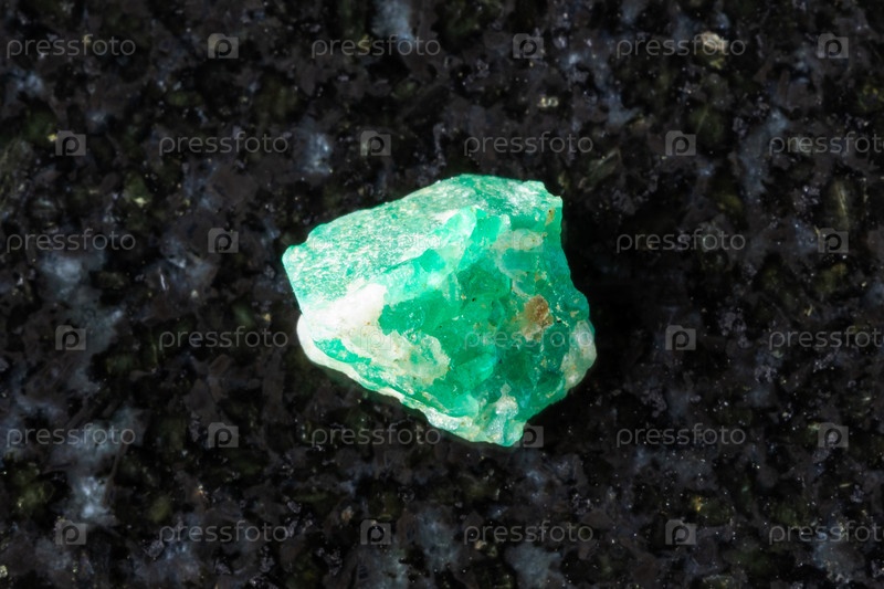 Образец сырого изумрудового минерала на черном граните
