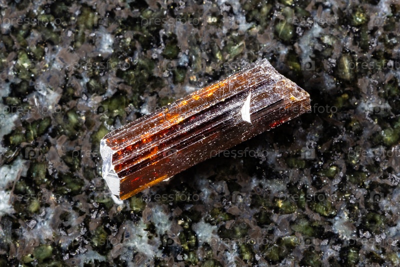 Образец сырого кристалла рутила на черном граните