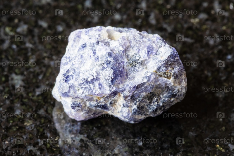Образец сырой кордиеритной породы на черном гранитном фоне возле Мадагаскара