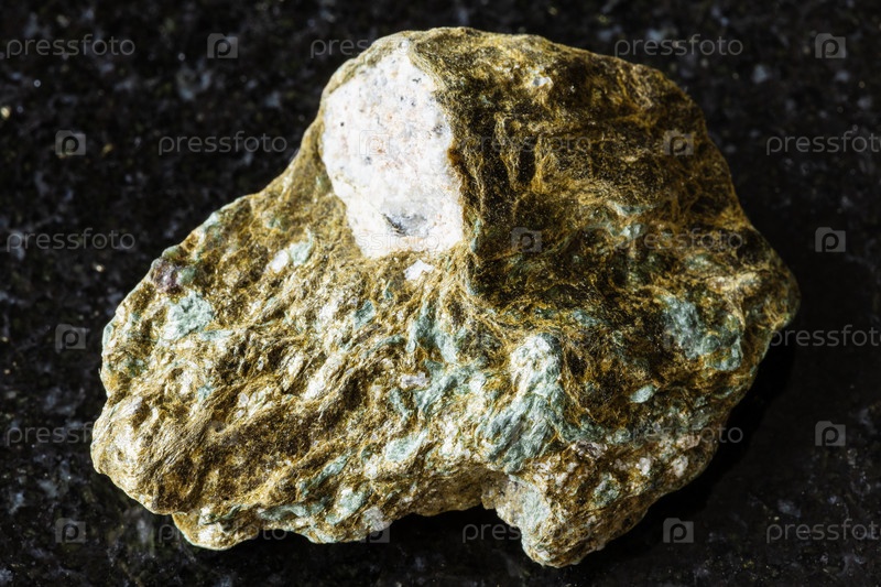 Образец грубой лобановитовой породы на черном граните