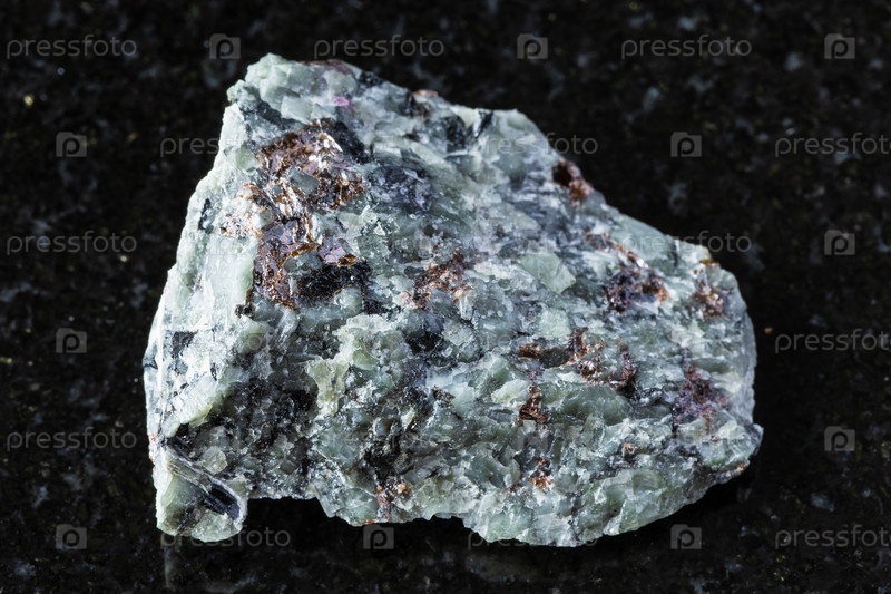 Нефелин со сфеном, минерал фельдспара на черном