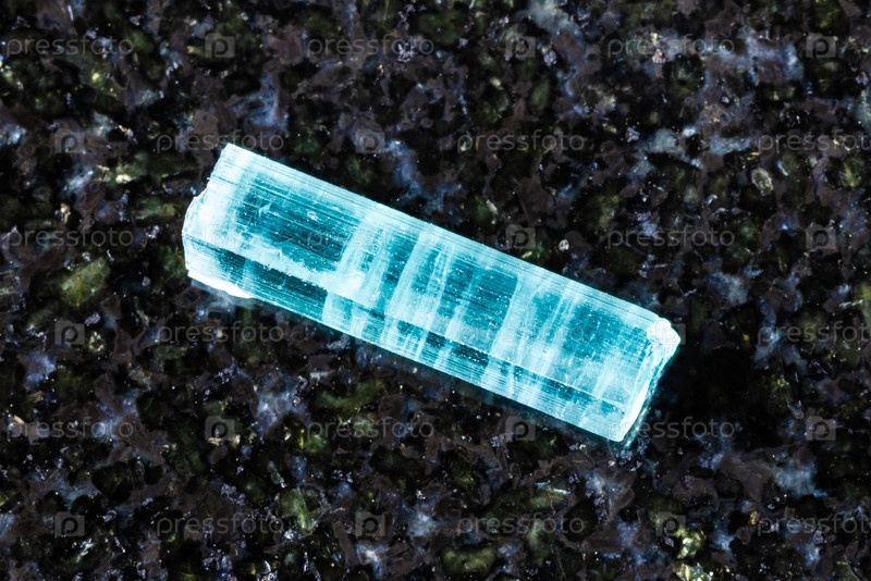 Образец сырого индиголитического кристалла на черном граните
