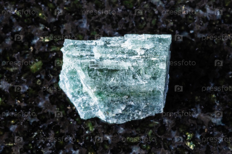 Образец грубого индиголитического минерала на черном