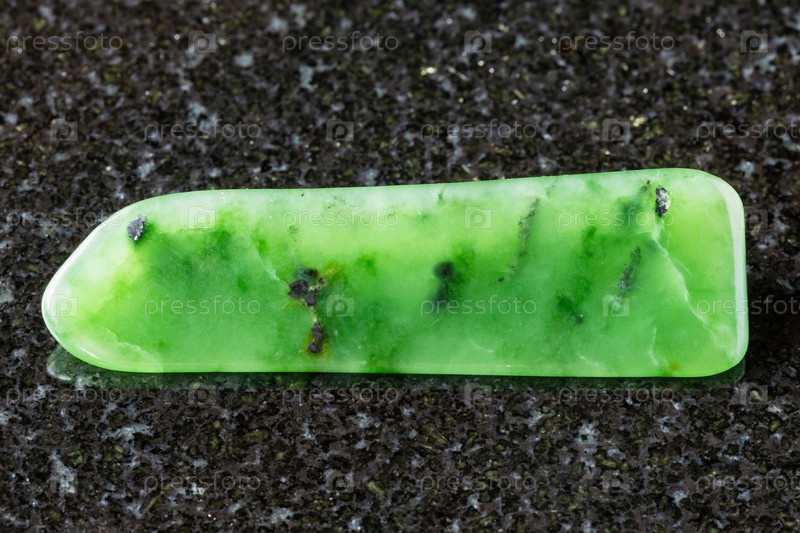 Образец полированного минерала зеленого нефрита на черном