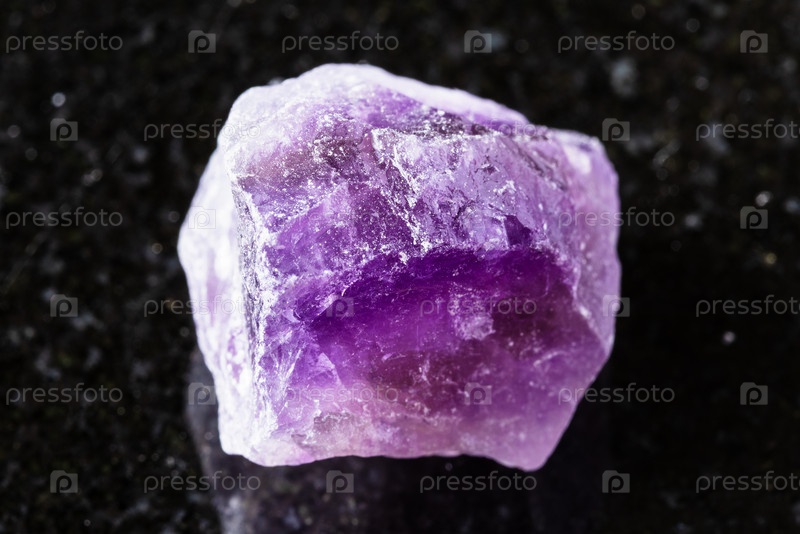 Образец сырого минерала аметиста на черном граните