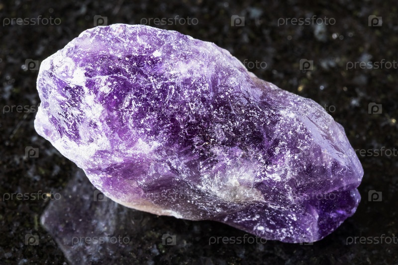 Образец необрезанного аметистового камня на черном граните