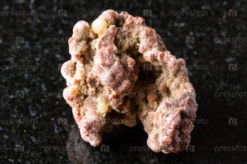 Образец сырой халцедонной породы на черном граните
