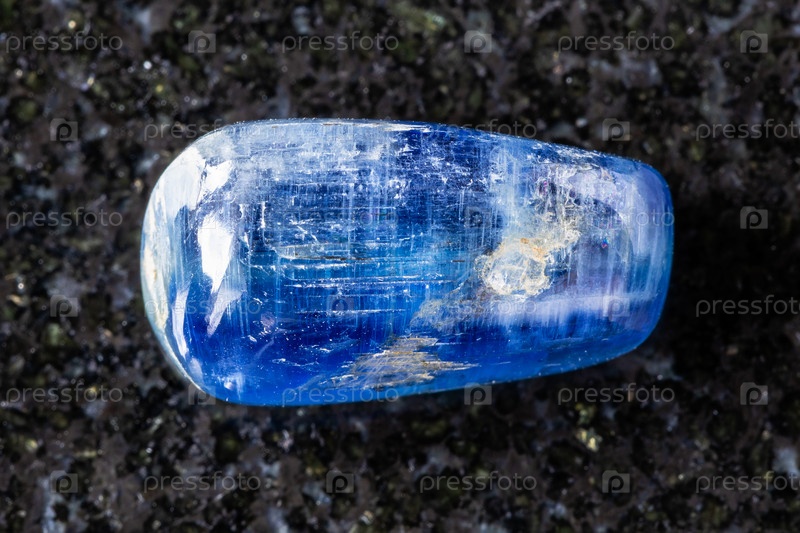 Образец полированного синего кианитового камня на черном