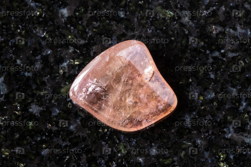 Полированный розовый кристалл турмалина на черном граните