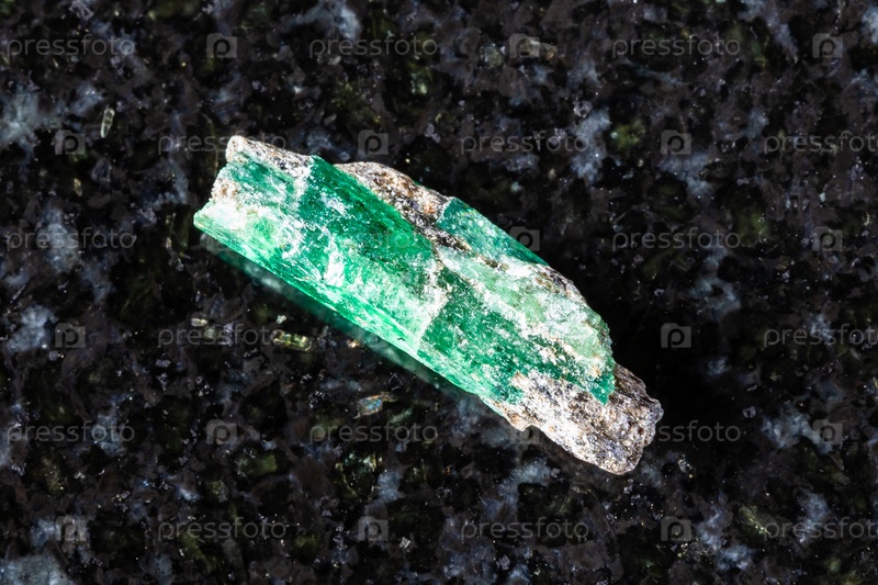 Образец грубого изумрудного кристалла на черном граните