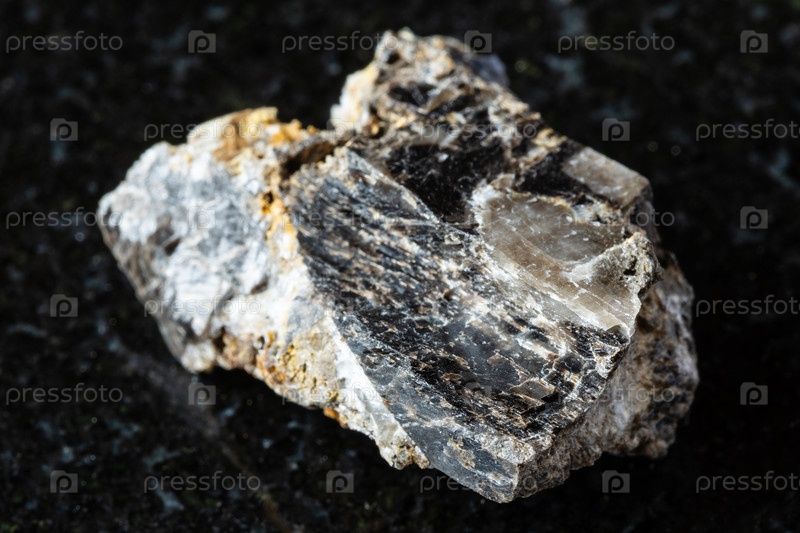 Образец грубой антраконитовой породы на черном граните