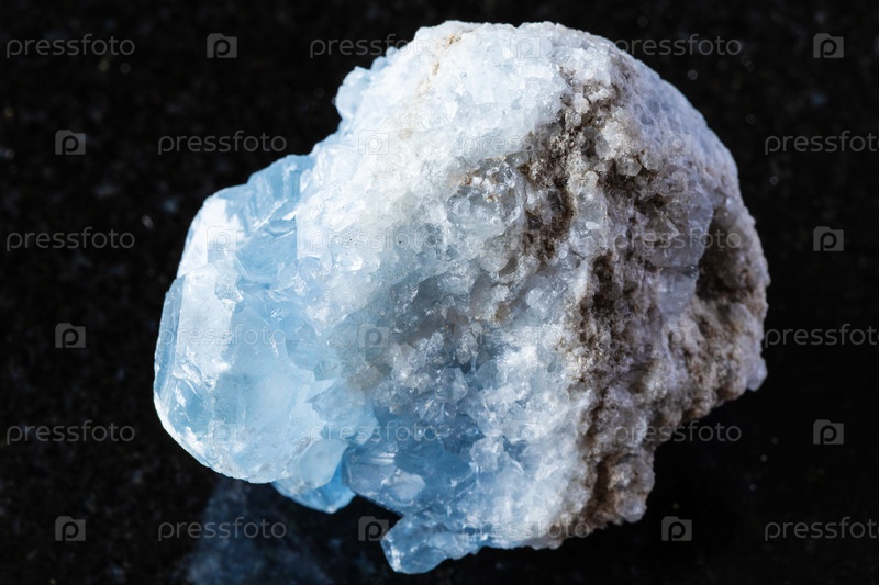 Образец сырой Celestite скалы на черном граните