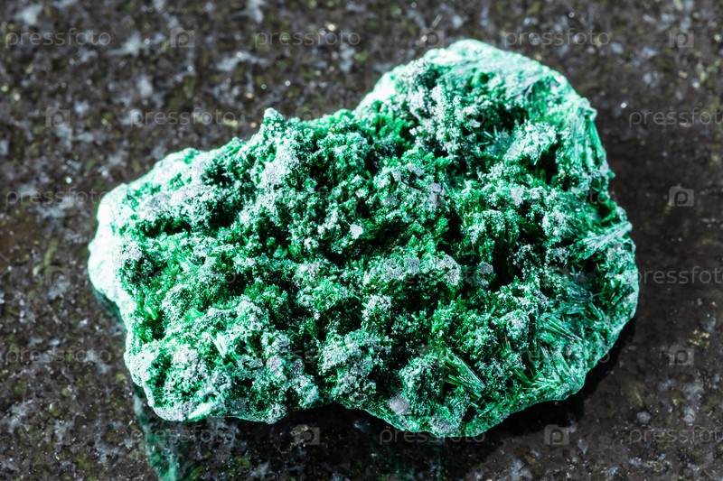 Образец волокнистого минерала малахита на черном