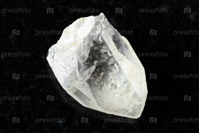 Образец хрусталя грубой породы на черном граните
