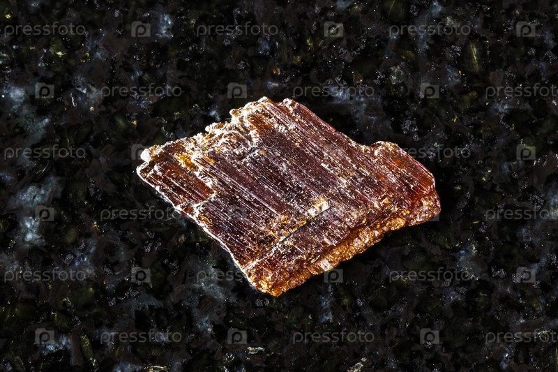 Образец сырого рутилового минерала на черном граните