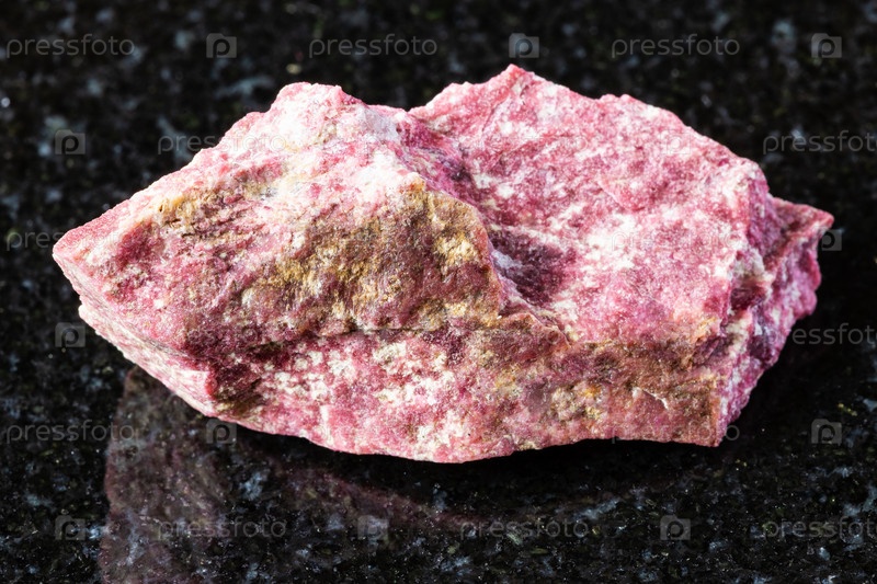 Образец сырого минерала тулита на черном граните