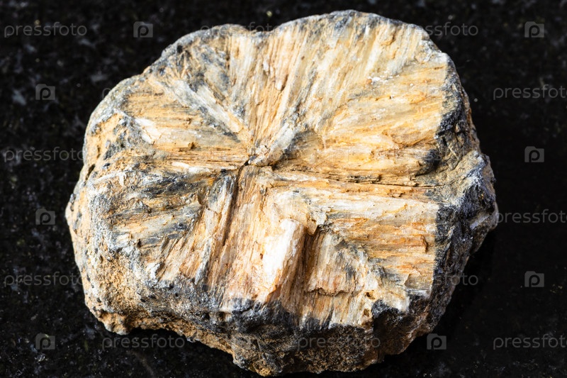 Образец сырого минерального гиастолита на черном граните