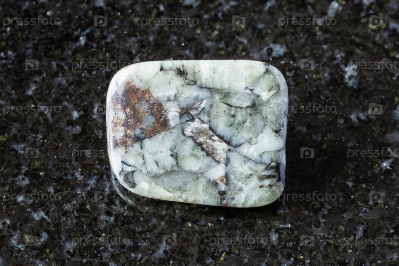 Образец полированной хибинитовой породы на черном граните