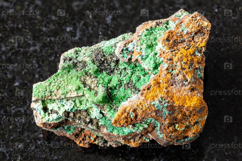 Образец сырой конихалцитовой породы на черном граните