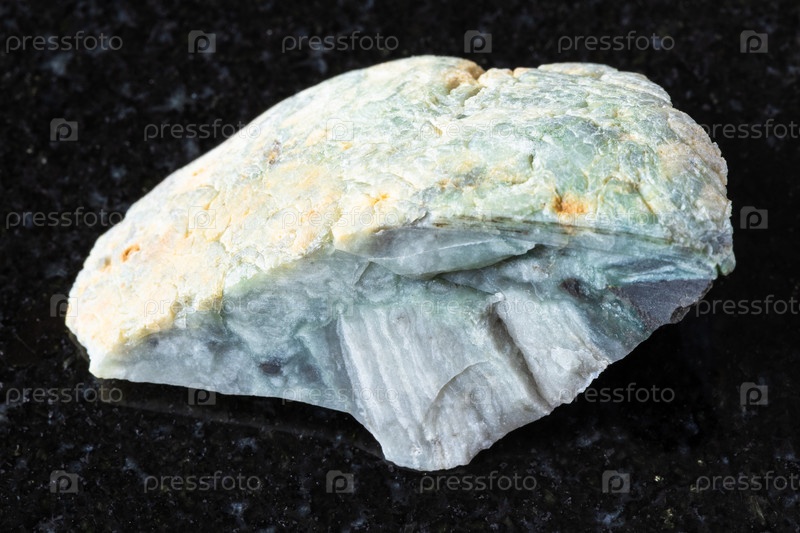 Образец сырой травяной породы блэкморайта на черном
