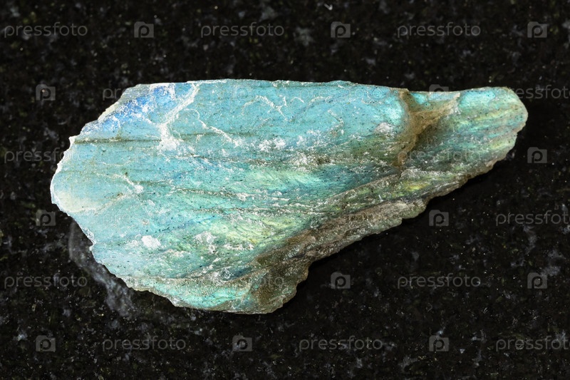 Образец сырого зеленого минерала лабрадорит на черном