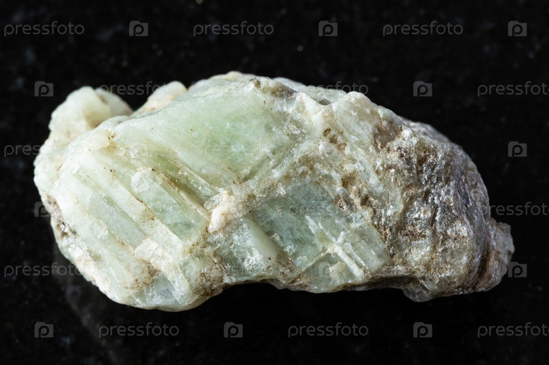 Образец сырого минерала берилла на черном граните