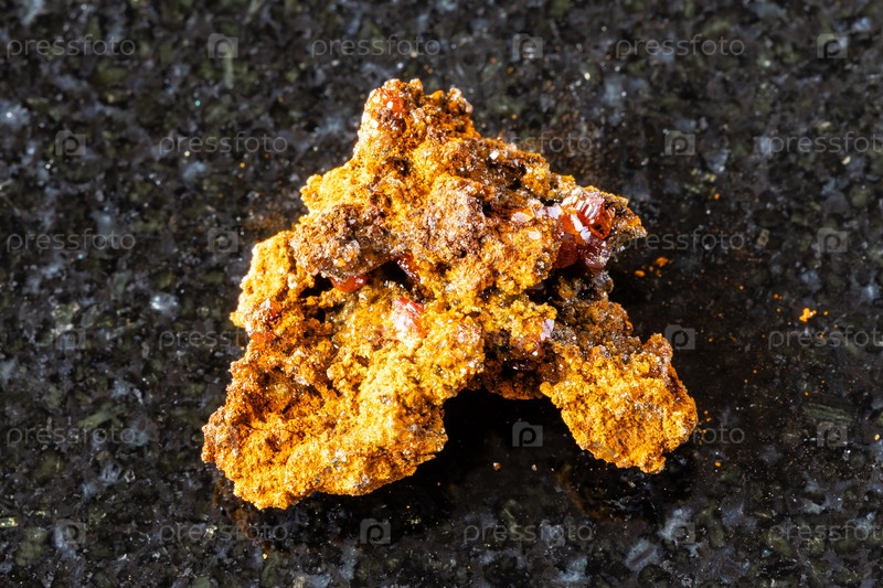 Образец сырой вулфенитовой руды на черном граните