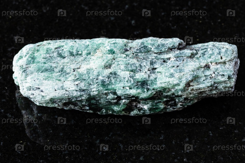Образец грубого зеленого минерала кианита на черном
