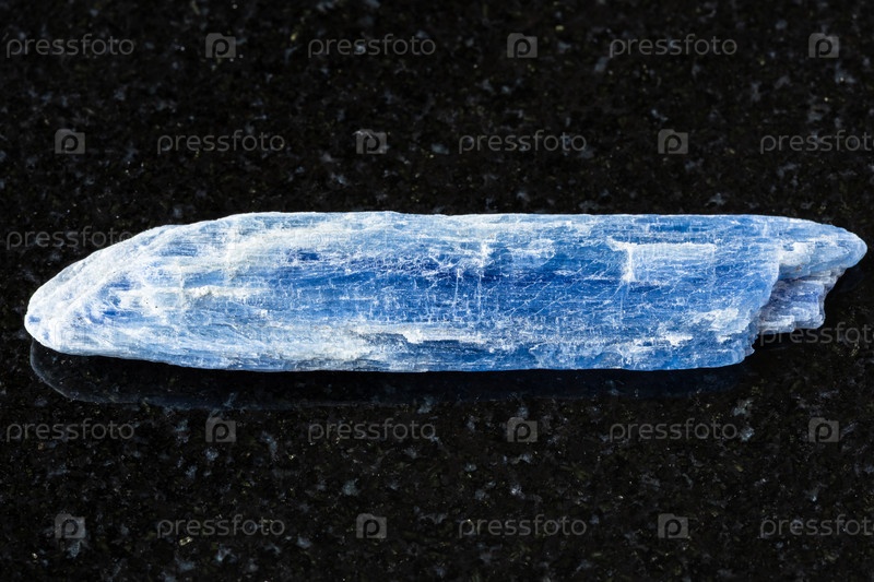 Образец сырого синего кристаллического кианита на черном