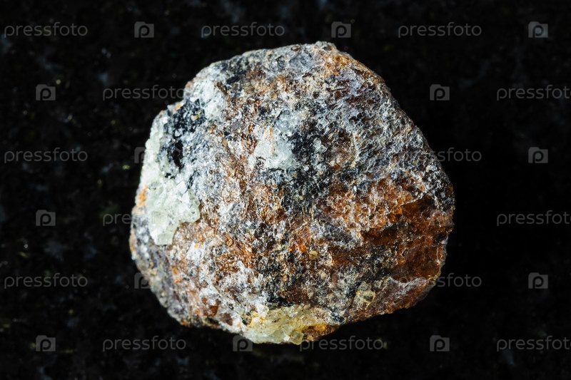 Образец сырого коричневого титанового минерала на черном гранитном фоне возле Хибины, Кольский полуостров, Россия