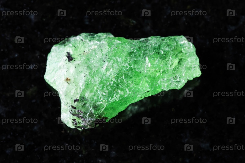 Образец сырого минерала граната tsavorite на черном