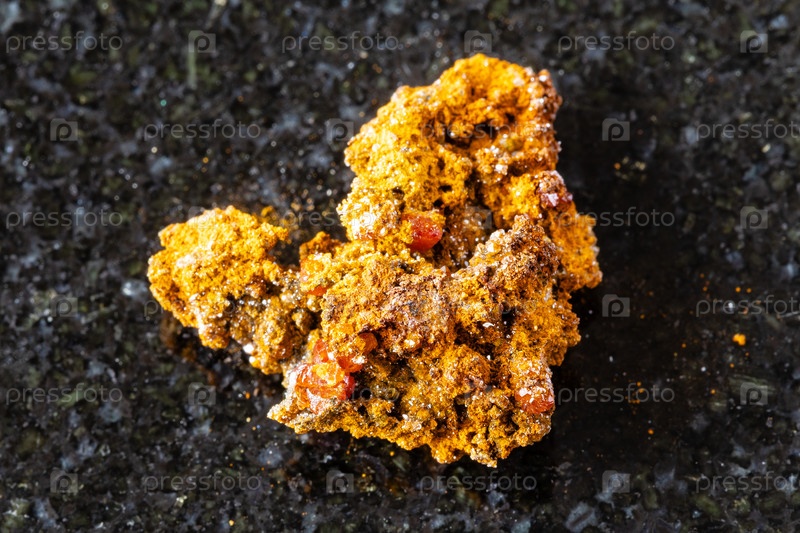 Образец сырой вулфенитовой породы на черном граните