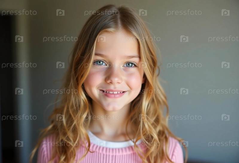 Молодая девушка из Белоруссии демонстрирует свою очаровательную улыбку и ярко-синие глаза, воплощая в себе невинность и счастье на мягком фоне, который улучшает ее естественную красоту