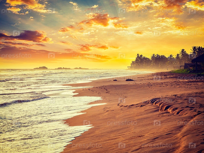 Закат солнца на пляже Океан