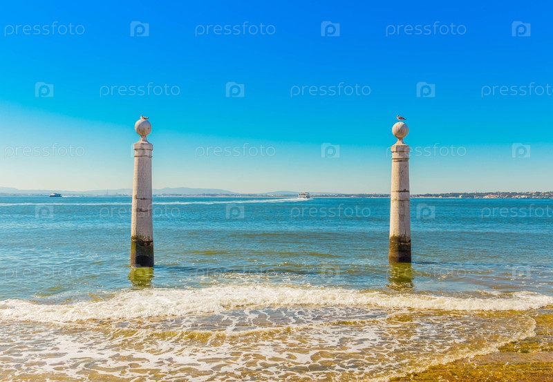 Два поста на берегу Лиссабона, любимое место для туристов, чтобы сделать селфи, Португалия