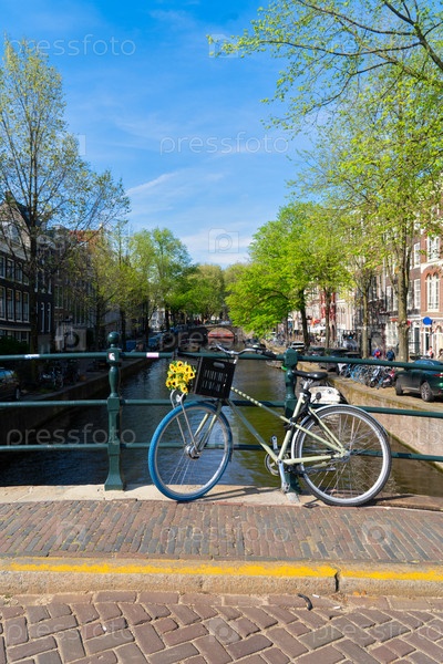 Велосипед на мосту, кольцо каналов Амстердама, Нидерланды