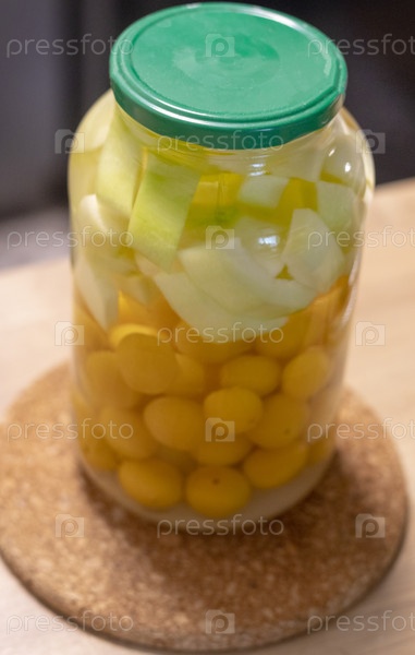 Консервированный компот в банках различных фруктов и ягод
