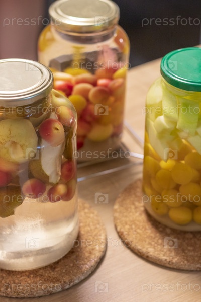 Консервированный компот в банках различных фруктов и ягод