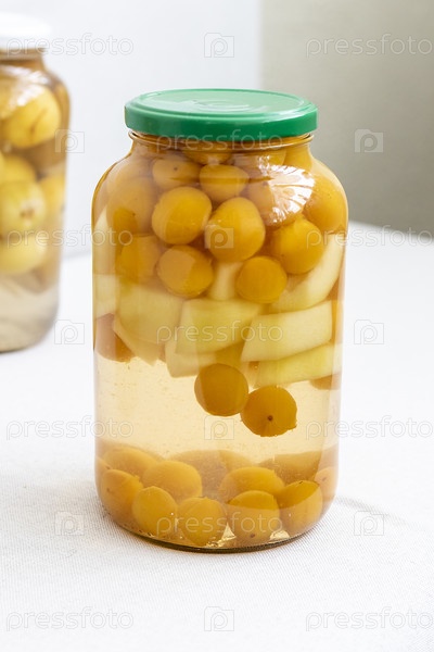 Консервированный компот в банках различных фруктов и ягод