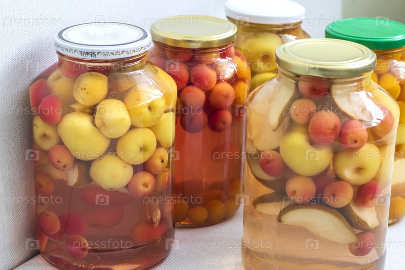 Консервированный компот в банках различных фруктов и ягод