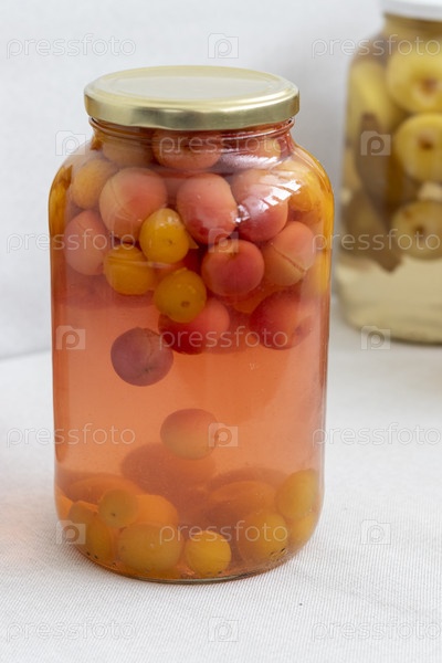 Консервированный компот в банках различных фруктов и ягод