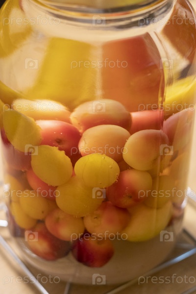 Консервированный компот в банках различных фруктов и ягод