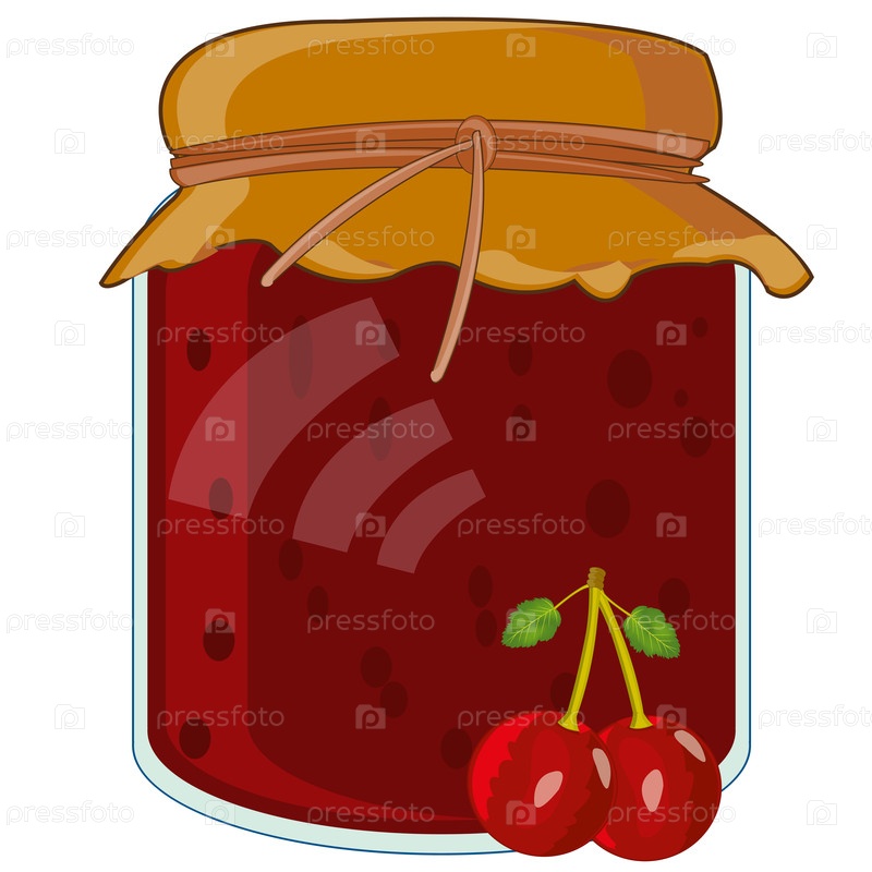 Банка с вишневым вареньем на белом фоне
