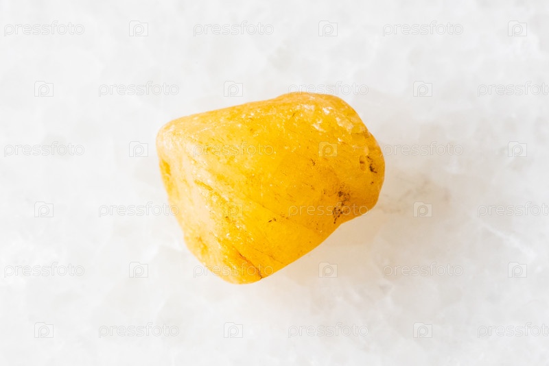 Образец сырого желтого сапфирового кристалла на белом