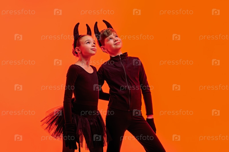 Детские фигуристки, одетые как дьяволы, выступают на льду в Хэллоуин