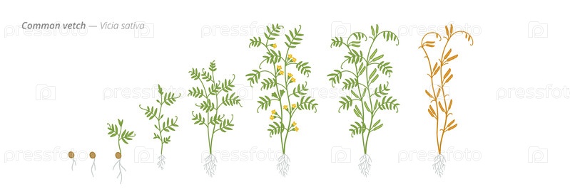Иллюстрация изображает этапы роста обычной ветчины, показывая прорастание семян, прорастание и полное развитие с сушеными вершинами для образовательных целей