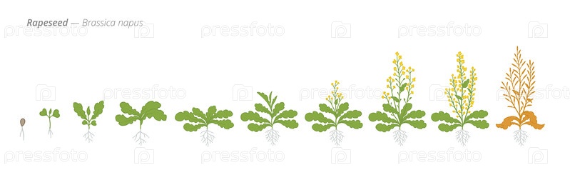 Жизненный цикл рапса - Ботаническая векторная иллюстрация для сельского хозяйства и планирования культур