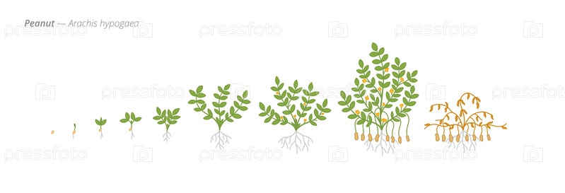Векторная иллюстрация стадий роста арахиса от семян до культур, предназначенных для использования в сельском хозяйстве при планировании орошения и удобрения